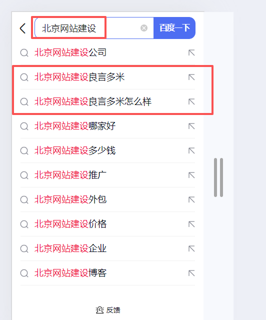1.優(yōu)先挑選精準(zhǔn)詞:比如“北京網(wǎng)站建設(shè)"“這種帶地區(qū)+需求的詞,做下拉有價(jià)值。