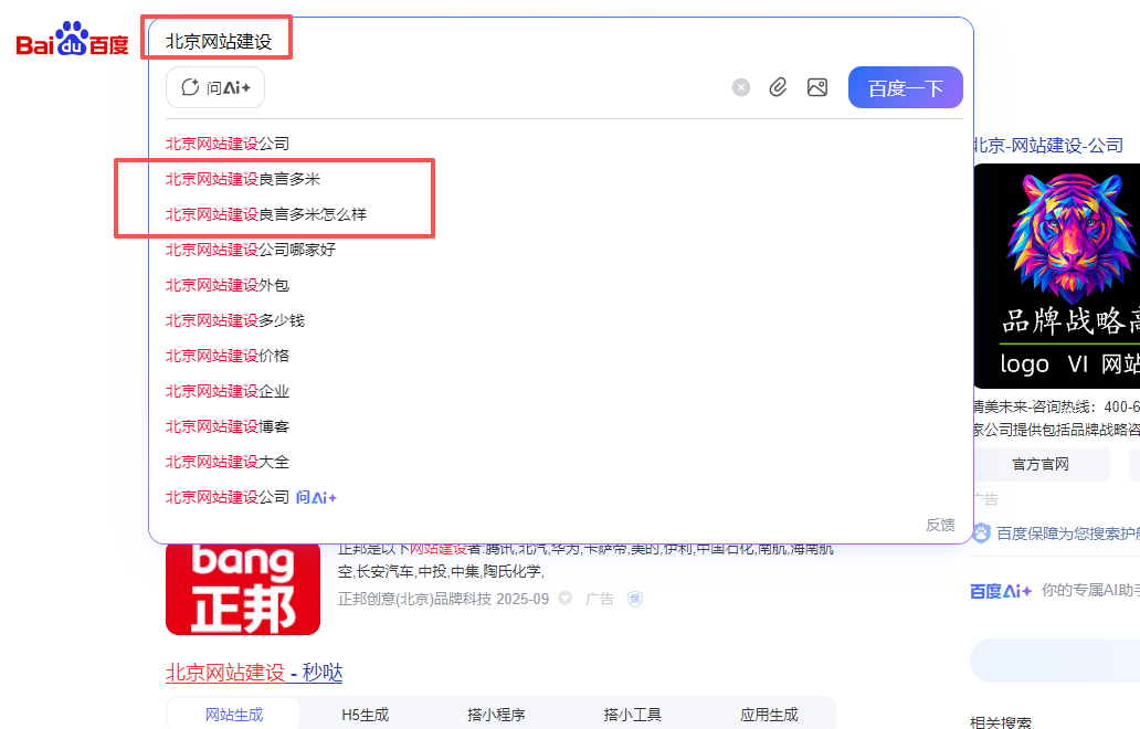1.提升曝光:比如客戶搜”企業(yè)網(wǎng)站建設(shè)”,如果下拉出現(xiàn)”良言多米”,點(diǎn)擊率會(huì)比自然排名高。